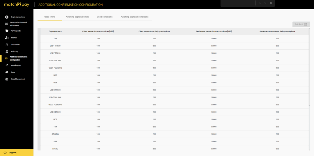 - On approval, the new/updated limit moves to “Used limits” and takes effect for subsequent payouts.