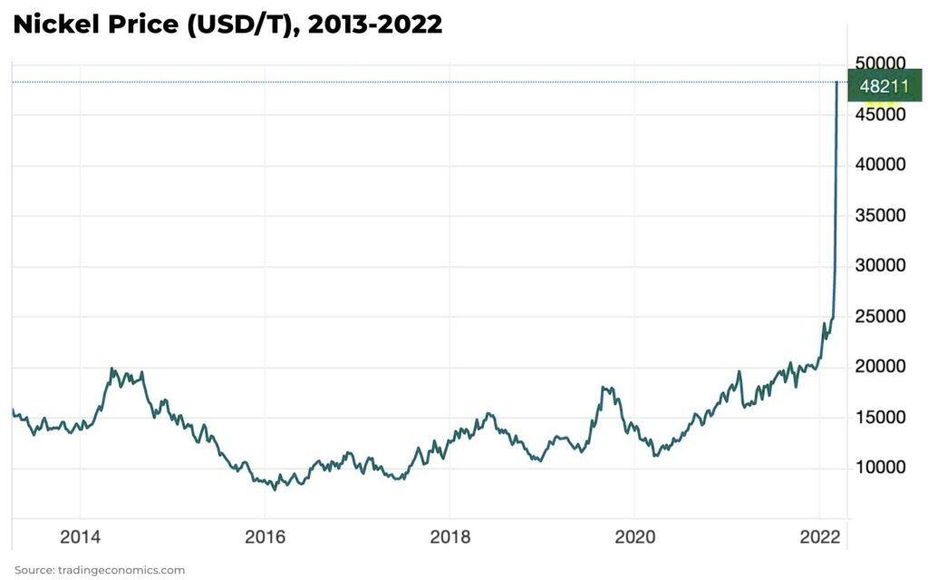 Instruments with small liquidity are another threat for Brokers using only B-Book. Usually, they are rarely traded by a broker’s clients, but their low liquidity in extreme situations can cause massive volatility. Example: Nickel on 8th March 2022.