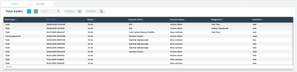- You can add new tasks directly from the Sales Dashboard, for yourself or for other team members (if permissions allow).