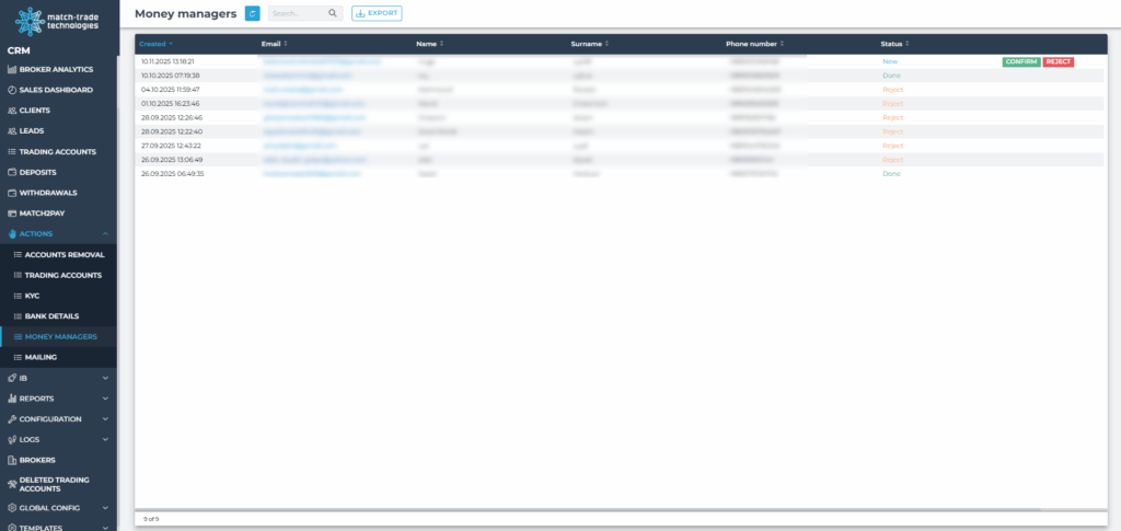 - Review transactions processed by other payment providers integrated with Match‑Trade