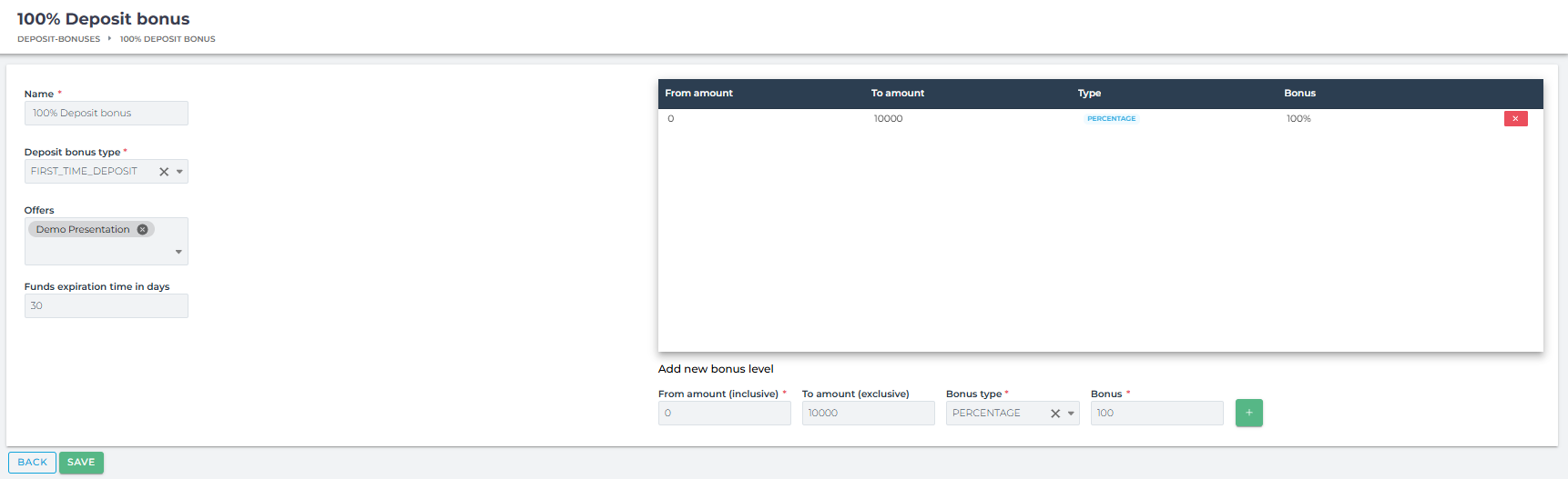 - Minimum Deposit – There you decide what will be minimum deposit which will trigger bonus allocation