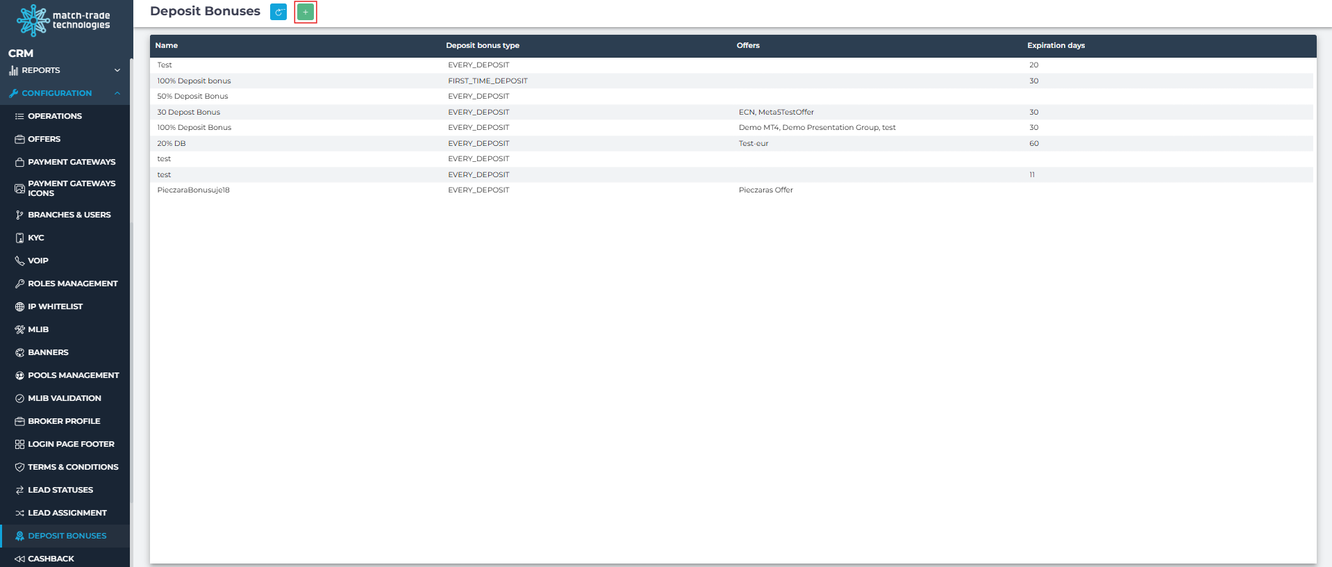 In this tab, you can set up a welcome bonus which will be given once only for your client first deposit. Keep in mind that it is only credit that cannot be withdrawn.