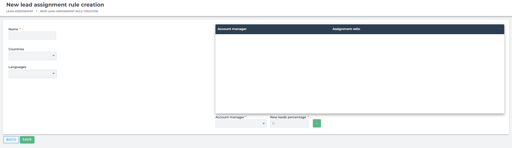 - Countries – choose from which countries should be leads assigned to account manager