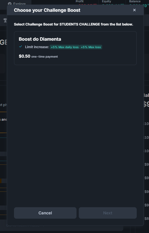 This is a paid add-on for challenges that allows increasing risk limits during an active challenge.