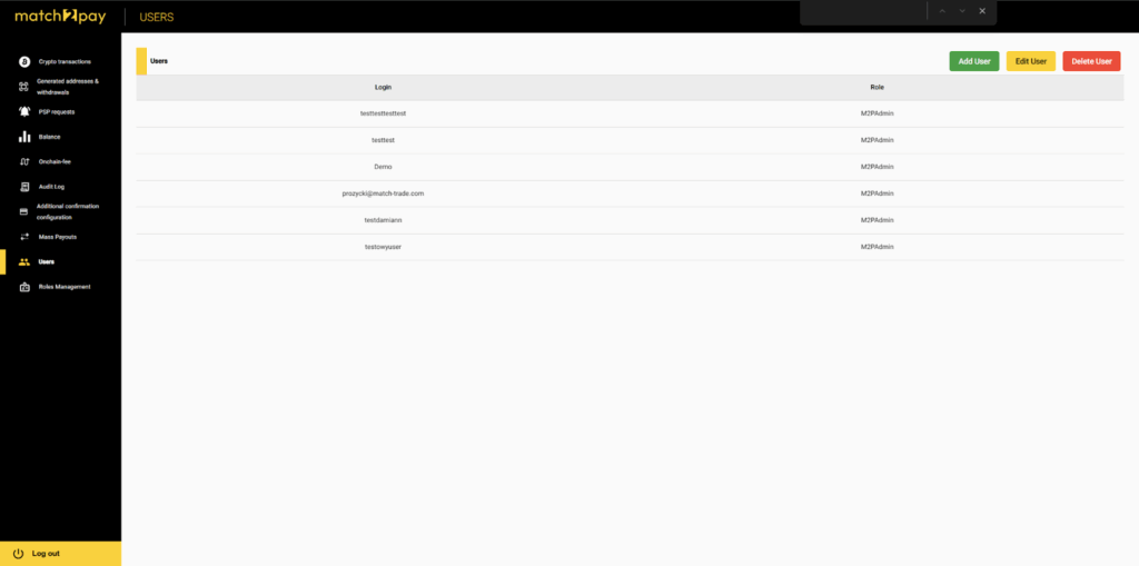 The Users tab enables administrators to manage user accounts effectively within the system. This tab provides tools to add, edit, or delete users as needed. Use the “Add User” button to create a new user account, the “Edit User” button to modify existing user details, and the “Delete User” button to remove users from the system.